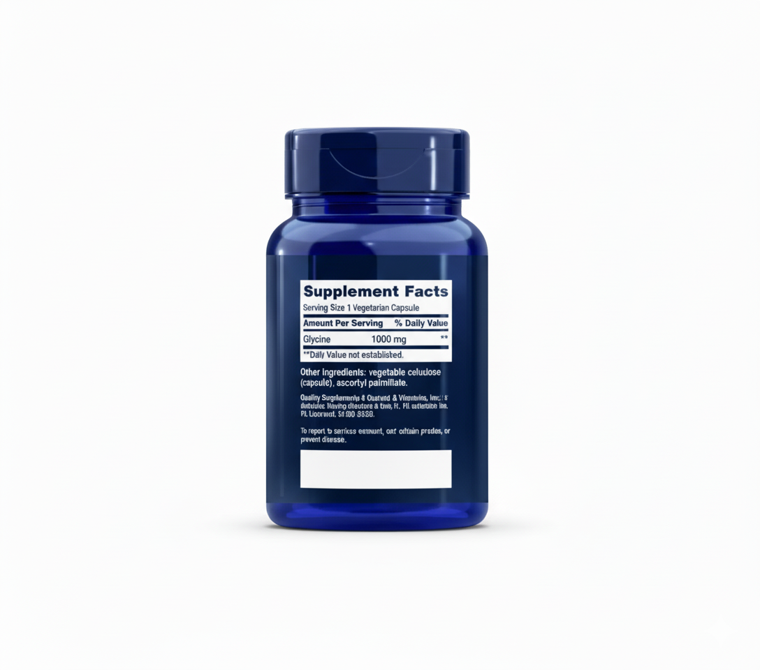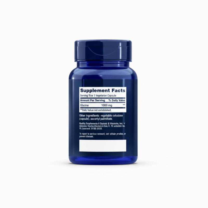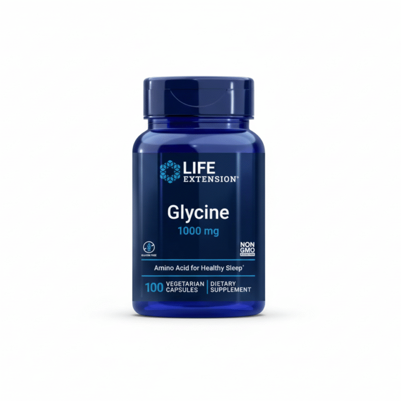 Glicinas yra aminorūgštis, kuri yra svarbi baltymų, ypač kolageno, sudedamoji dalis. Glicinas sudaro apie 35 % kolageno molekulės, todėl jis yra svarbus jungiamojo audinio, odos, sausgyslių ir sąnarių elastingumui ir stiprumui. Be struktūrinės funkcijos, glicinas veikia kaip slopinantis neuromediatorius centrinėje nervų sistemoje, padedantis reguliuoti nervinių impulsų perdavimą ir palaikyti nervų sistemos pusiausvyrą. Glicinas taip pat dalyvauja glutationo – vieno galingiausių organizmo antioksidantų – sintezėje, padedant kovoti su oksidaciniu stresu ir uždegimu. Tyrimai rodo, kad glicinas gali pagerinti miego kokybę, mažinti nuovargį ir skatinti raumenų atsistatymą po fizinio krūvio. Dėl savo universalių savybių glicinas yra svarbus tiek struktūrinei, tiek funkcinei organizmo sveikatai. Life Extension siūlo 1000 mg dozę – tai žymiai daugiau nei daugelyje tradicinių glicino papildų.